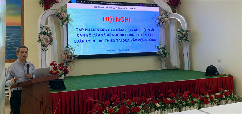 Ngày 22/10-24/10/2025, tại tỉnh Ninh Bình, Trung tâm Chính sách và Kỹ thuật PCTT tổ chức lớp tập huấn nâng cao năng lực cho đội ngũ cán bộ cấp xã về phòng chống thiên tai, quản lý rủi ro thiên tai dựa vào cộng đồng.