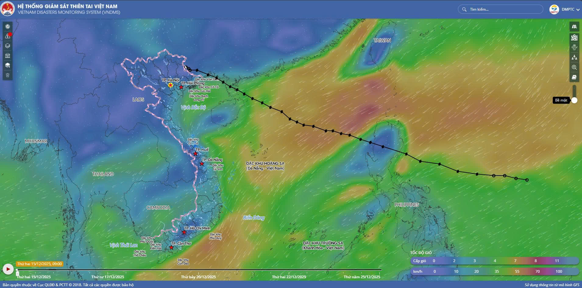 - Hồi 07 giờ ngày 04/10, vị trí tâm bão ở vào khoảng 18,1 độ Vĩ Bắc; 116,9 độ Kinh Đông, trên vùng biển phía Đông khu vực Bắc Biển Đông, cách đặc khu Hoàng Sa khoảng 530km về phía Đông Đông Bắc. Sức gió mạnh nhất vùng gần tâm bão mạnh cấp 11 (103-117km/giờ), giật cấp 14. Di chuyển theo hướng Tây Tây Bắc, tốc độ khoảng 25km/h.