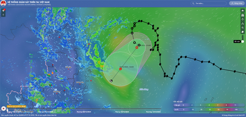 Hồi 07 giờ ngày 01/12, vị trí tâm bão ở vào khoảng 14,7 độ Vĩ Bắc; 111,6 độ Kinh Đông, trên vùng biển phía Tây Bắc khu vực Giữa Biển Đông. Sức gió mạnh nhất vùng gần tâm bão mạnh cấp 8 (62-74km/h), giật cấp 10. Di chuyển chậm theo hướng Tây.
