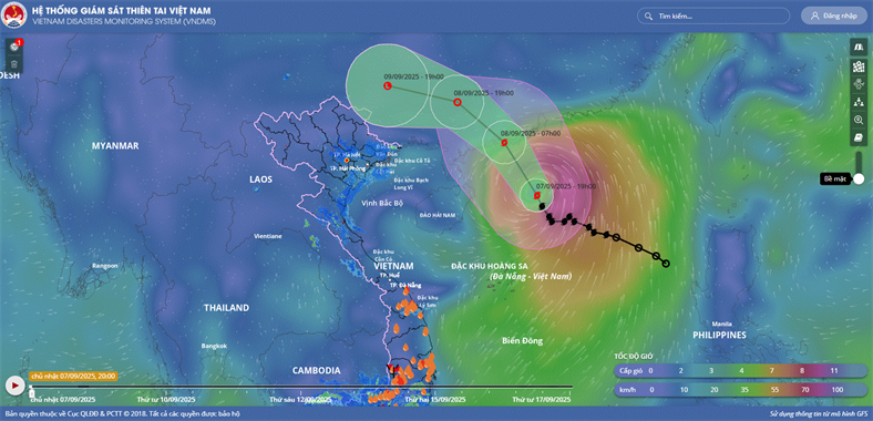 Đông đã mạnh lên thành bão, cơn bão số 7 (tên quốc tế là Tapah). Hồi 19 giờ, vị trí tâm bão ở vào khoảng 18,3 độ Vĩ Bắc; 115,8 độ Kinh Đông, trên vùng biển phía Đông khu vực Bắc Biển Đông. Sức gió mạnh nhất vùng gần tâm bão mạnh cấp 8 (62-74km/giờ), giật cấp 10. Di chuyển theo hướng Tây Bắc, tốc độ 10-15km/h.