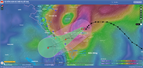 Hồi 07 giờ ngày 22/10, vị trí tâm bão ở vào khoảng 17,1 độ Vĩ Bắc; 110,7 độ Kinh Đông, trên vùng biển phía Tây Bắc đặc khu Hoàng Sa, cách Tp.Đà Nẵng khoảng 280km về phía Đông Đông Bắc. Sức gió mạnh nhất vùng gần tâm bão mạnh cấp 10 (89-102km/giờ), giật cấp 12. Di chuyển theo hướng Tây Tây Nam, tốc độ khoảng 10km/h.