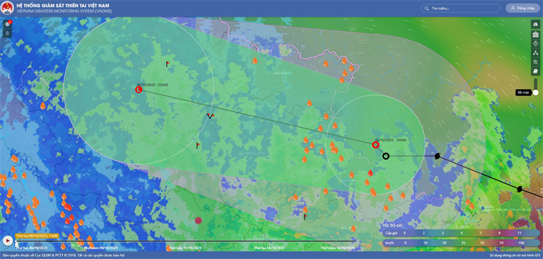 Hồi 13 giờ ngày 04/10, vị trí tâm bão ở vào khoảng 18,3 độ Vĩ Bắc; 115,3 độ Kinh Đông, trên khu vực Bắc Biển Đông, cách đảo Hải Nam (Trung Quốc) khoảng 500km về phía Đông Đông Nam. Sức gió mạnh nhất vùng gần tâm bão mạnh cấp 11-12 (103-133km/giờ), giật cấp 15. Di chuyển theo hướng Tây Tây Bắc, tốc độ khoảng 25km/h.