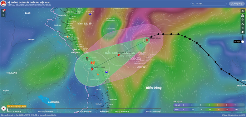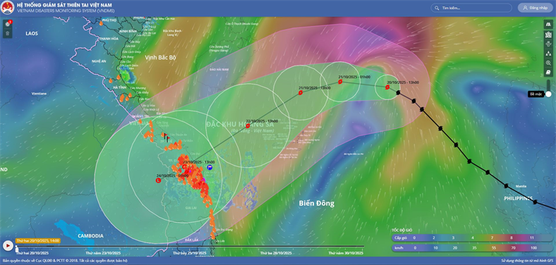 Hồi 13 giờ ngày 20/10, vị trí tâm bão ở vào khoảng 18,3 độ Vĩ Bắc; 115,9 độ Kinh Đông, cách đặc khu Hoàng Sa khoảng 460km về phía Đông Đông Bắc. Sức gió mạnh nhất vùng gần tâm bão mạnh cấp 9-10 (75-102km/giờ), giật cấp 12. Di chuyển theo hướng Tây Tây Bắc, tốc độ khoảng 20km/h.