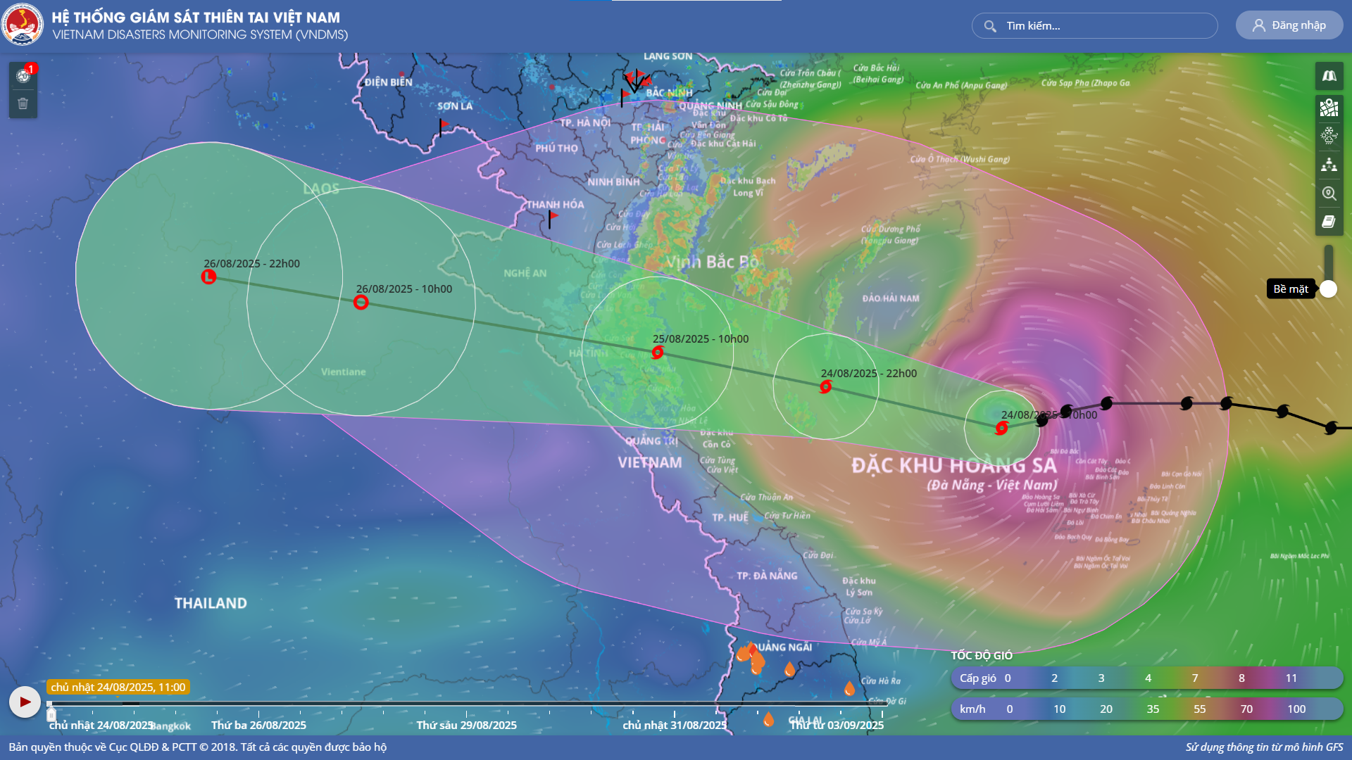 Chiều 24/8, Bắc vịnh Bắc Bộ (Cát Hải, Cô Tô, Vân Đồn): gió cấp 6–7, giật 9; phía Nam (Bạch Long Vĩ) gió cấp 8–9, giật 11; sóng 2,5–4,5m, biển động rất mạnh.