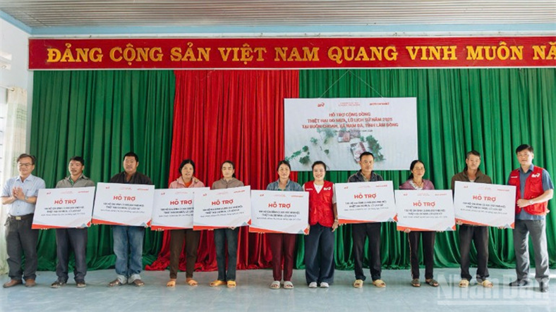 Quỹ Hỗ trợ Chương trình Dự án An sinh xã hội Việt Nam (AFV) phối hợp ActionAid quốc tế tại Việt Nam và Ủy ban Mặt trận Tổ quốc xã Nam Đà (tỉnh Lâm Đồng) vừa tổ chức hỗ trợ tiền mặt cho 100 hộ dân thuộc 6 thôn bị thiệt hại nặng nề do mưa lũ cuối năm 2025. Mỗi hộ được hỗ trợ 3 triệu đồng.