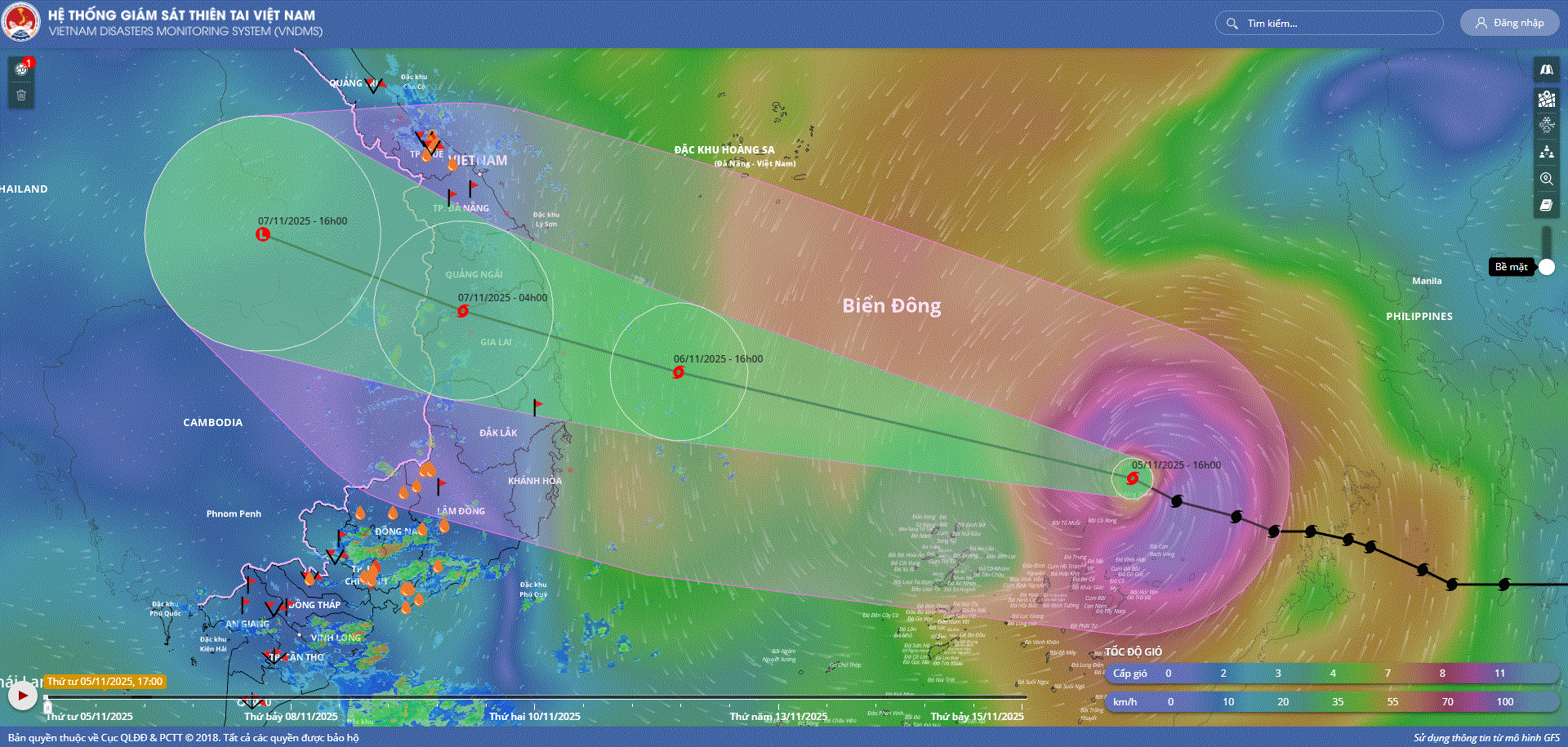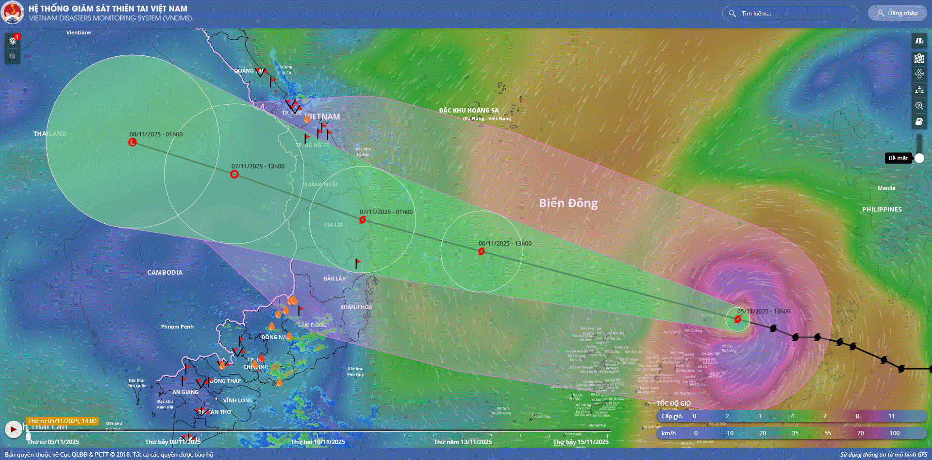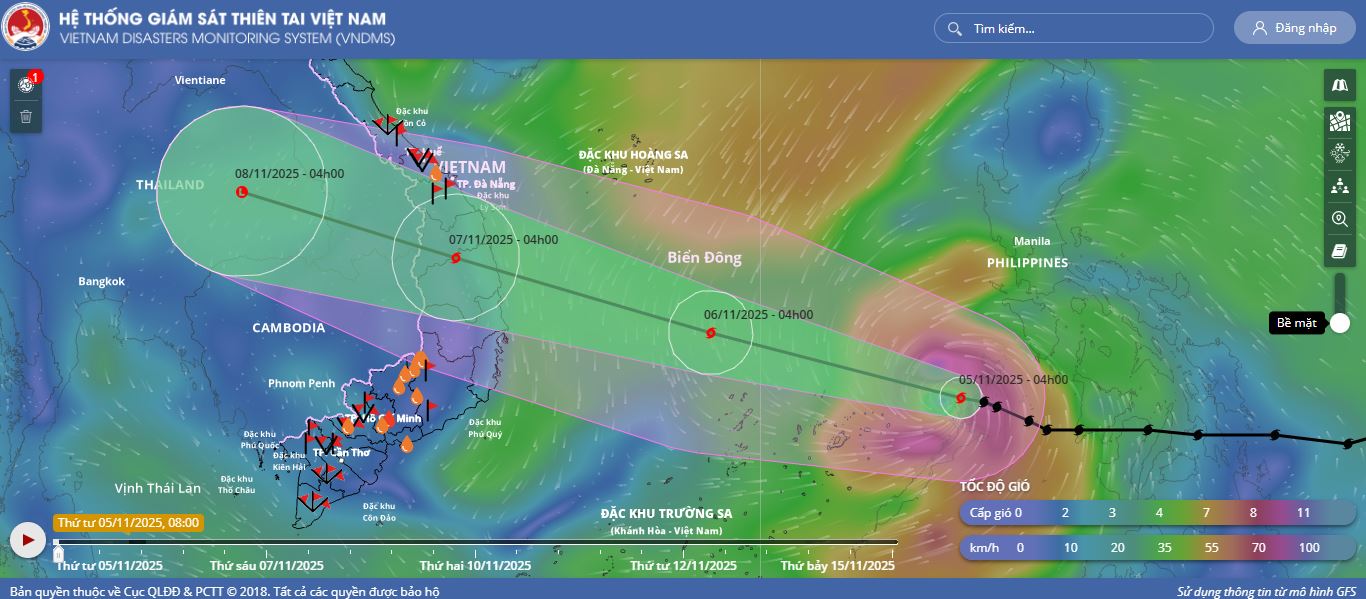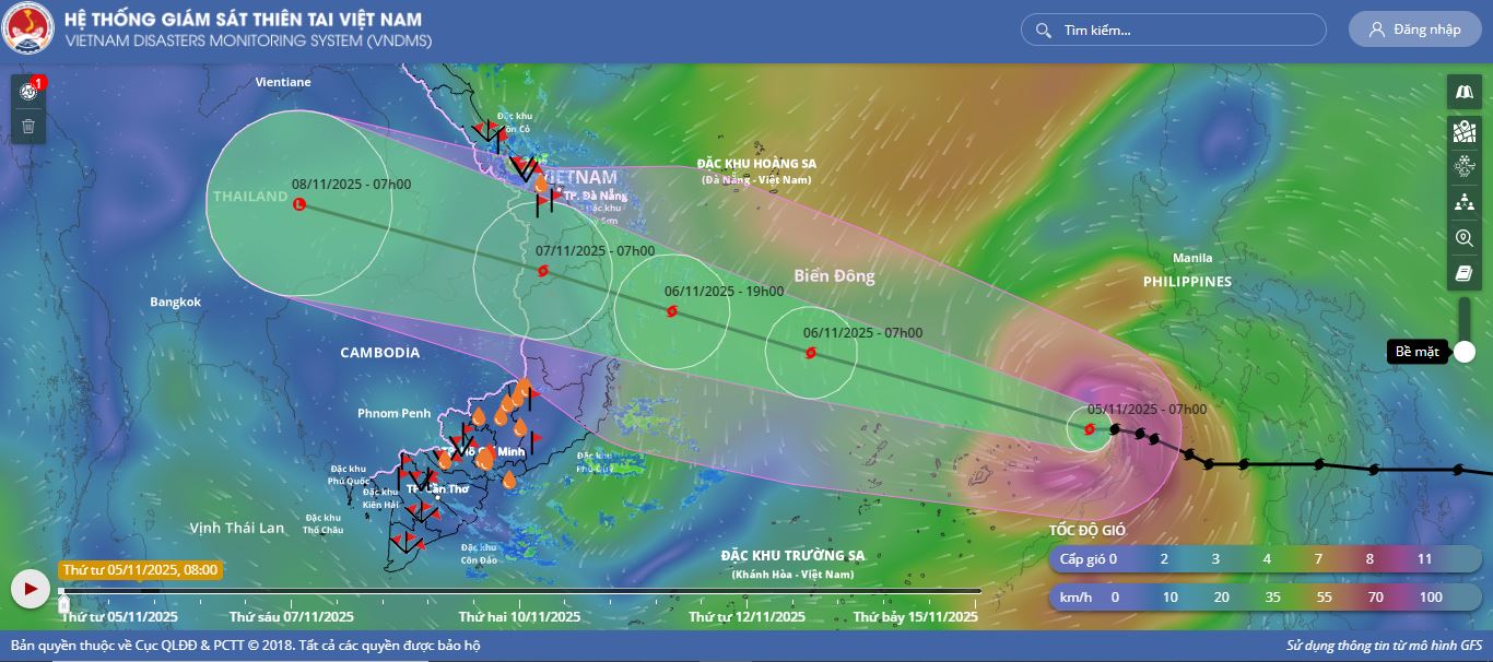 - Sáng sớm ngày 05/11, bão Kalmaegi đã đi vào vùng biển phía Đông khu vực Giữa Biển Đông, cơn bão số 13 trên Biển Đông trong năm 2025.