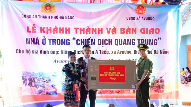 Công an thành phố Đà Nẵng tổ chức khánh thành, bàn giao căn nhà đầu tiên trong "Chiến dịch Quang Trung" cho vợ chồng ông Alăng Đích (trú xã A Vương, thành phố Đà Nẵng).